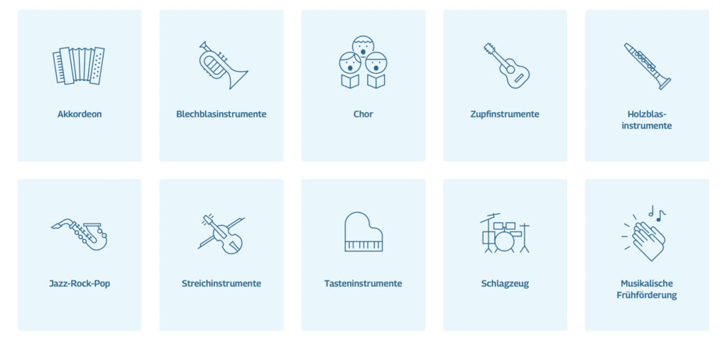 Fließende Linien nehmen auf abstrakte Weise die Form des Landkreises auf und umschließen dabei die verschiedenen Unterrichtsorte. Sie veranschaulichen gleichzeitig die musikalische Vielfalt von Klängen und schaffen eine symbolische Verbindung zur Region.