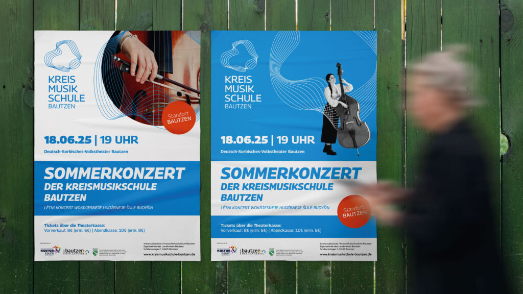 Die Kreismusikschule Bautzen präsentiert sich im neuen Corporate Design von ZH2. Neben der modernen Website wurden auch Plakate, Social-Media-Formate und weitere Kommunikationsmittel entwickelt – ein harmonisches Zusammenspiel, das die Musikschule frisch und zukunftsorientiert inszeniert.