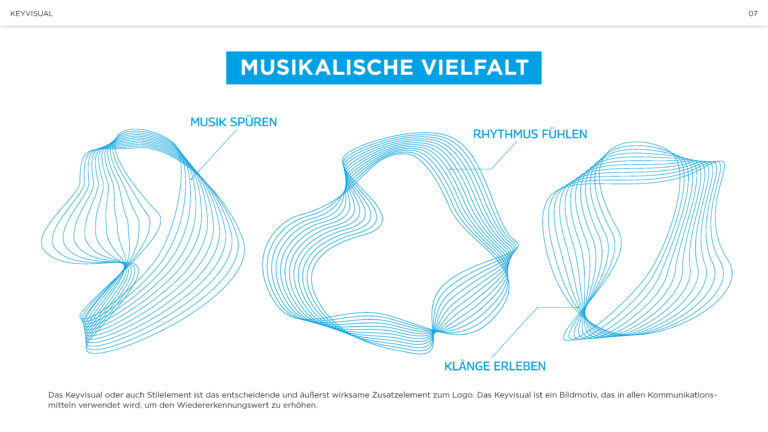 Das Design basiert auf der Visualisierung von Klangwelten, indem musikalische Elemente wie Wellenformen, Schwingungen und harmonische Strukturen in eine ästhetische Bildsprache übersetzt werden.